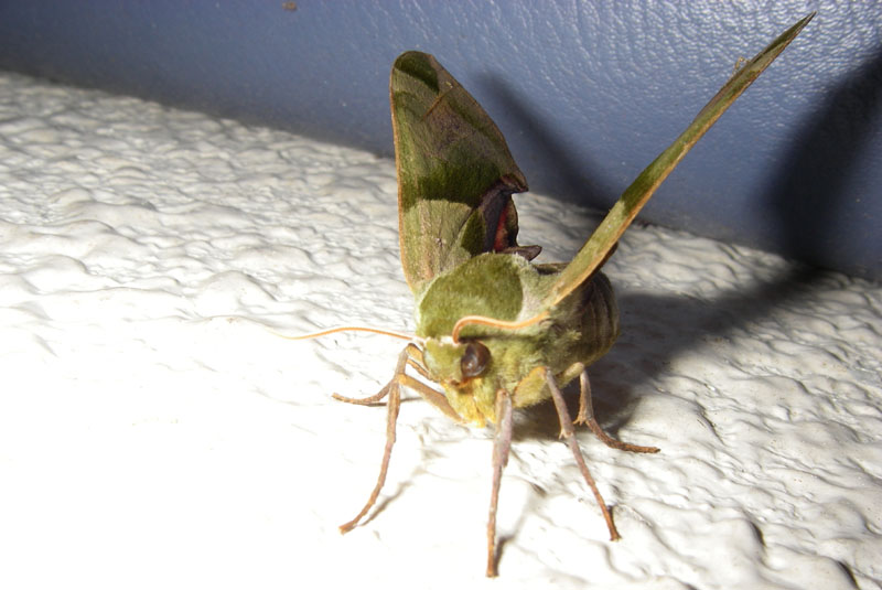 緑色でおしゃれな模様のスズメガです。開張65〜80ミリ。食草はニレ科