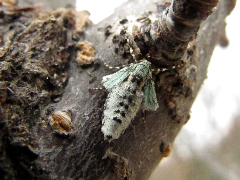 このエメラルドグリーンのはねはイチモジフユシャクですね。