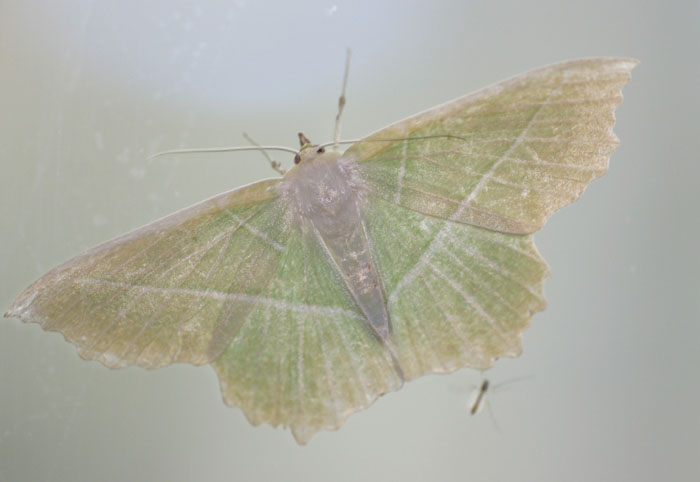 体長2.2センチぐらい。アオシャクだけどやや黄緑色。はねの縁がぎざぎざ。