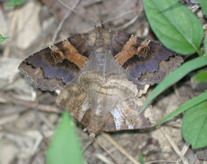 道路を歩いていると、塊が空から降りてきました。よく見ると夜見る蛾が交尾中。