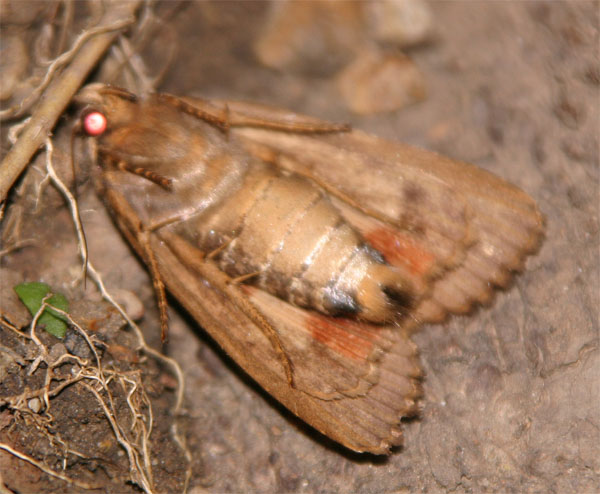 少し横からみた写真ですが,体の横に白い縞がないのでナンカイカラスヨトウですね.