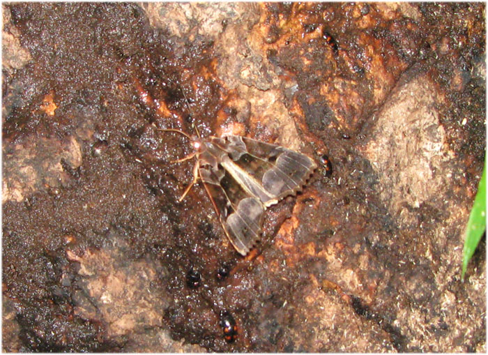 2007年6月19日、山県市内。今年もアベマキの幹から樹液が流れ出しました。翅の長さ23oぐらい。
