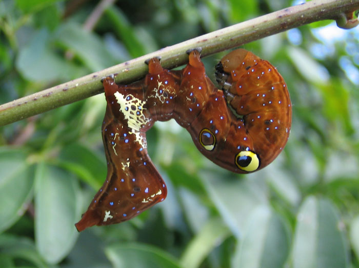 2006年9月2日、山県市内。脱皮して終齢幼虫になったところでしょうか。茶色です。