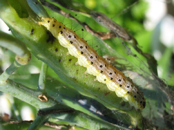 2005年6月26日,ハボタンにやってきたガの幼虫です.