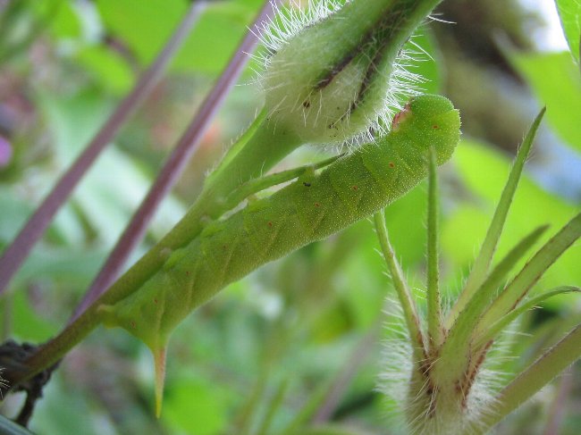 今朝は3cmほどの幼虫がいました。