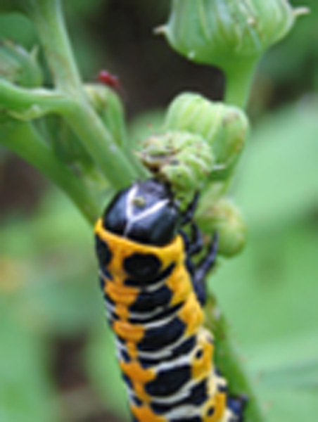 ノゲシの茎にいました。ノゲシの花のつぼみをもりもり食べていました.