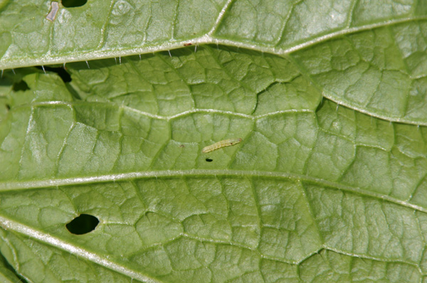 キバラモクメキリガの幼虫をみつけたとき,同じ野菜の葉についていたものです.
