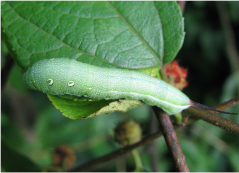 2009年6月24日、岐阜市雛倉で。クワの葉の上にいました。