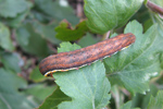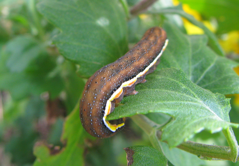 シロシタヨトウには緑色のものや褐色のものなど個体変異があるようです.