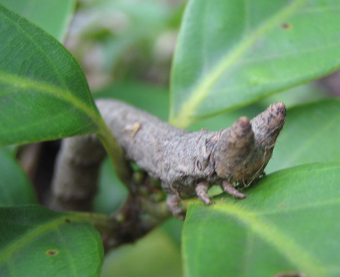 2006年7月1日、山県市で撮影。棒のような幼虫。コナラの葉。体長6センチぐらい。