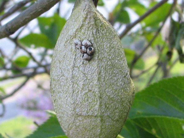 2005年4月28日朝7時ごろ.卵が開き始め,中の幼虫が黒く見えてきました.