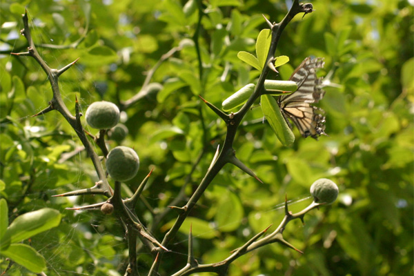 台風が過ぎ去っていい天気になり,アゲハが産卵にやってきました.