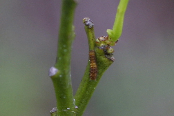 葉のつけねにもう一匹いました.たまごが2個あったのですね.