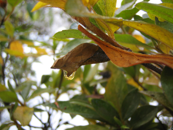 2005年12月15日,ツツジの枝でさなぎで越冬中のアゲハです.