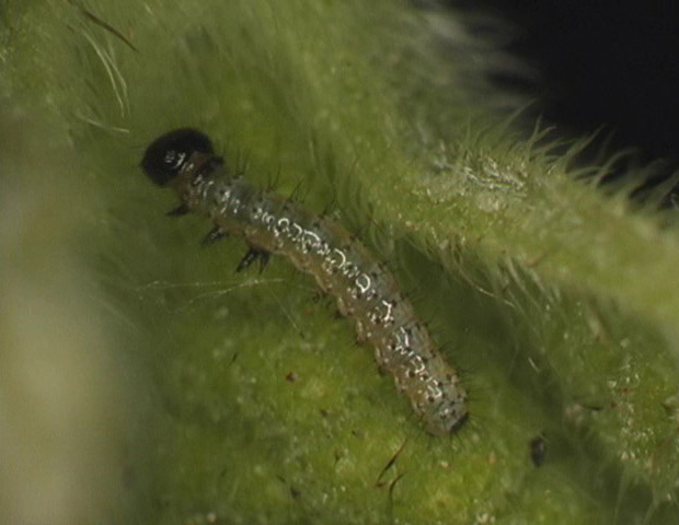 孵化したばかりの幼虫は頭が黒く体は薄い色をしています。