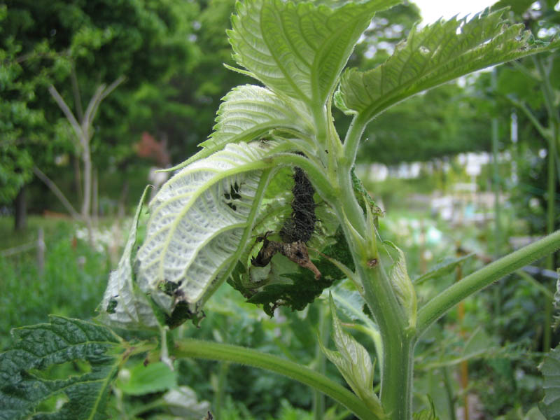 2006年5月11日、葉をまるめて巣をつくって、中で蛹になりました。
