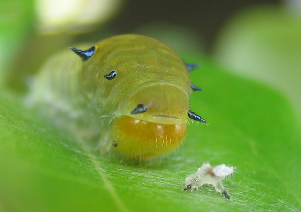 2005年7月22日,さっき脱皮しました.手前にあるのが脱いだ皮の一部です.