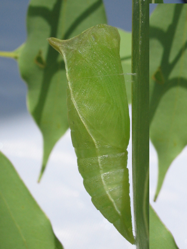 陽に透かすと中が見えそうなくらい,明るい黄緑色のきれいな蛹です.
