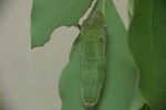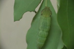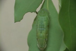 アオスジアゲハの幼虫が脱皮して蛹になるようすです(蛹化).