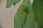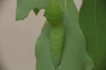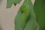 アオスジアゲハの幼虫が蛹になるために,体を支える糸を張るようすです(前蛹化).