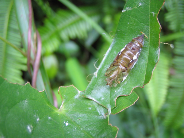 7月16日,山県市でヤマノイモの葉をひろげたら,さなぎの抜け殻がありました.