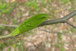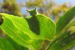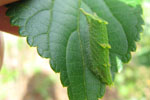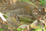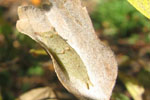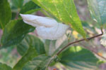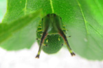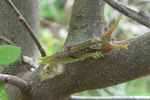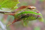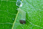 じっとしています。若葉が伸びると脱皮して葉の先端にいるようになります。