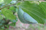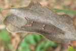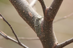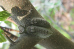 枯葉の下で越冬した幼虫は4月上旬にエノキに這い上がり、枝の股の部分で