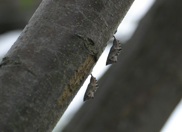 2006年5月26日朝、さなぎになりました。昨日のものは1匹行方不明。新たに2匹発見。合計7匹確認しました。