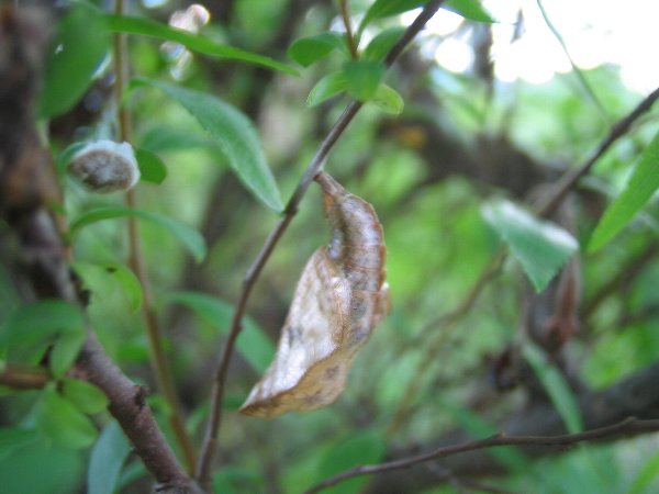 緑いろがみえず乾いた感じの蛹です。