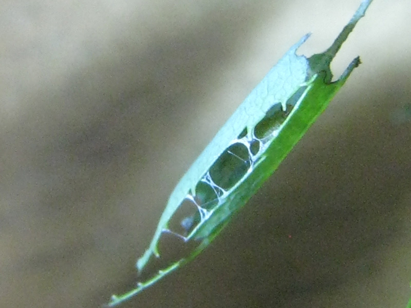 数時間で葉を巻き、糸で結んで住居を作り上げる。