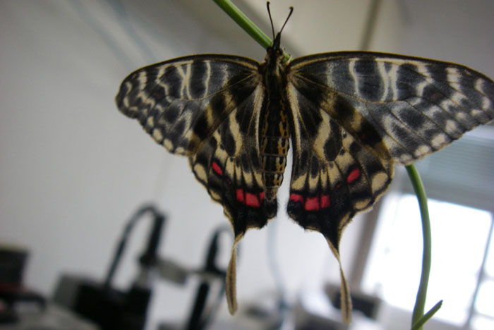 2006年7月11日、岐阜大学教育学部の研究室でホソオチョウが羽化しました。