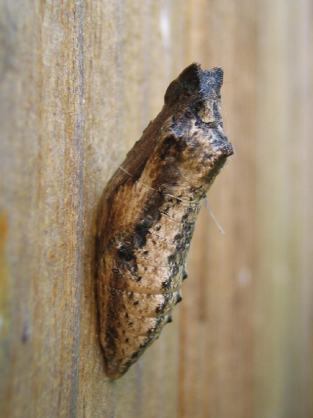 家の軒下の,ちゃんと雨も雪も当たらない所で蛹になっていました.