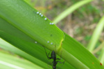 クロオオアリのいるススキには、キジラミやアブラムシがいました。