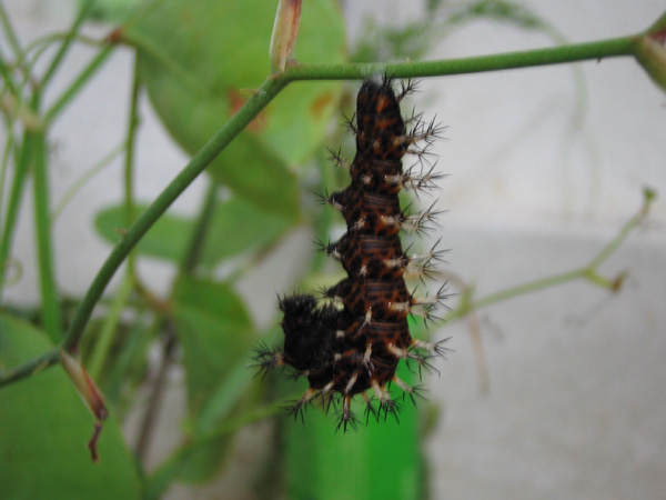 2005年7月23日、飼育していたルリタテハの幼虫の2匹目が前蛹になりました.