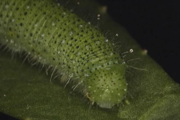 スジグロシロチョウの幼虫