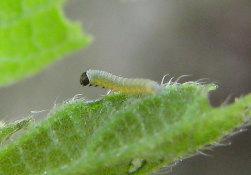 卵のついていた葉に幼虫がいました。