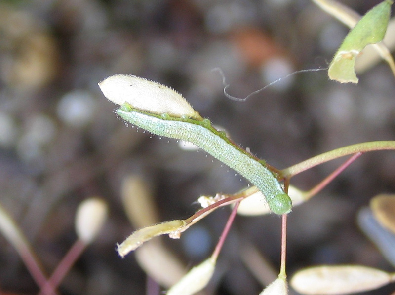 2005年5月30日撮影.10mmぐらいのツマキチョウの幼虫です.