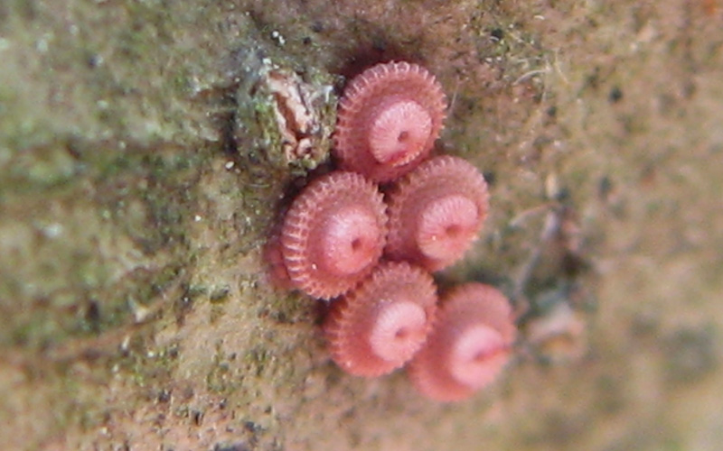2008年6月7日,岐阜市北部.イボタノキに産みつけられたたまご.