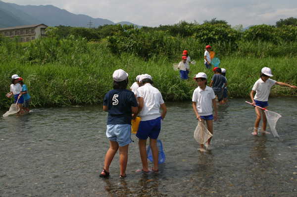 伊自良の子供たちと、小川で生き物採集を行いました。