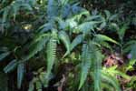 ウラジロ科のシダ植物。葉は二股分岐した茎についている。