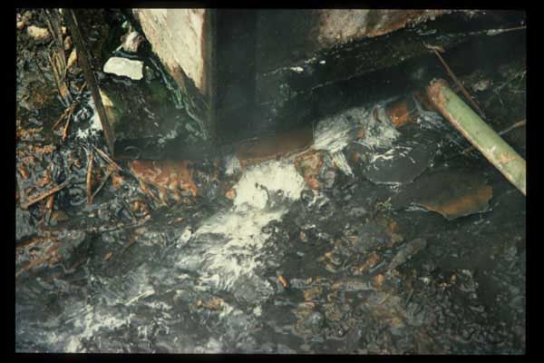 タンクから流れ出る温泉水は硫化水素のにおいがします。