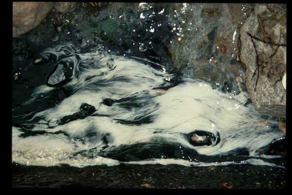 湯の峰温泉にも硫黄芝細菌のものと考えられる白い色をしたバイオマットがみられました。