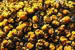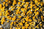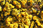 ダイダイゴケ属。子器の直径は1mm以下。教育学部本館北のベンチ。
