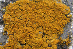 石の表面に生えていた。地衣体は1cm程度で、オレンジ色。ダイダイゴケ科。