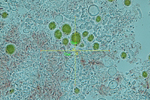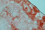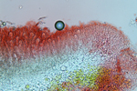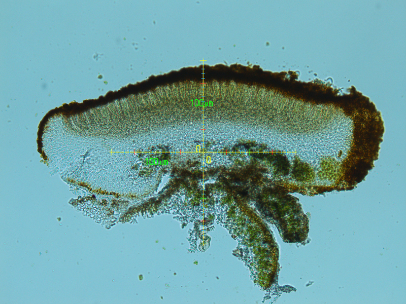 オレンジ色のレカノラ型子器をつける。地衣体は黒い縁取りがある。
