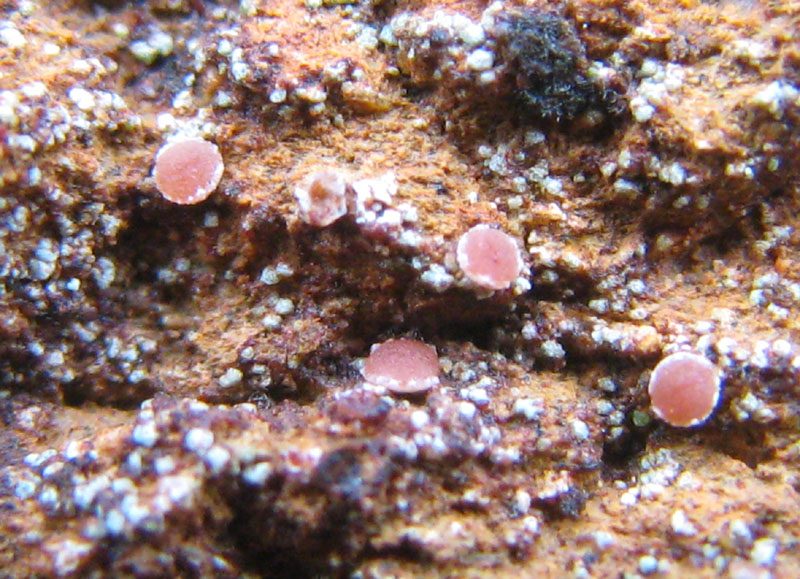 上野玄武岩の露頭の表面に生えていた。