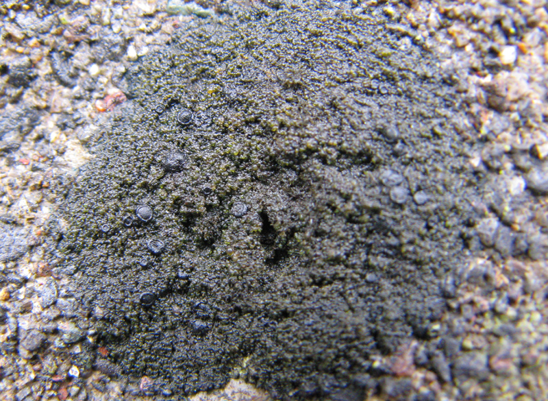 岩石上生。コンクリートに生えていた。色は黒っぽいですが、