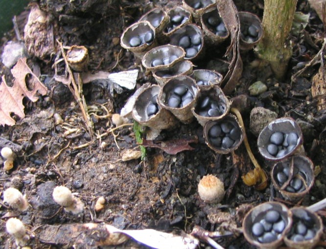 右手にある茶色のものが開いて黒い粒がはいったおわんのような形になります.