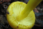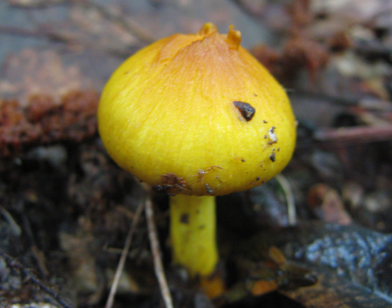 雑木林の地面に生えていた。かさは黄色で、大きさ2-3cmぐらい。