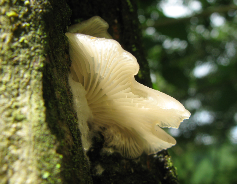 広葉樹林内の樹木の幹に生えていた。傘の径は4センチぐらい。